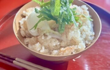 ごはんの上に盛り付け、きゅうりを添える。お好みでパクチーもオススメです。