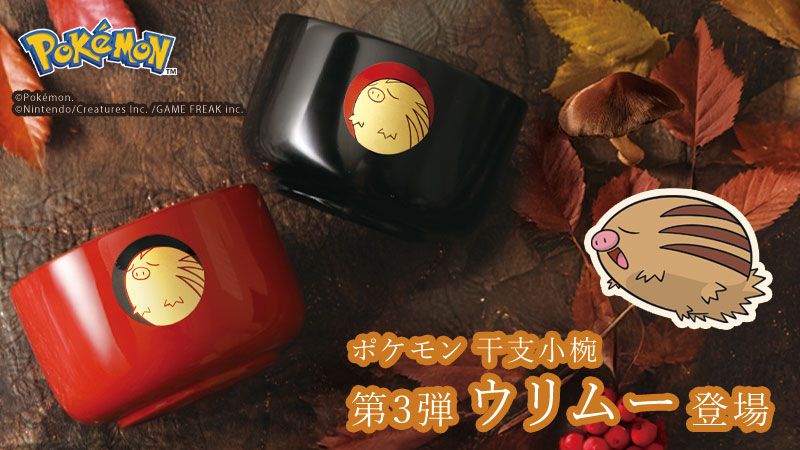 発売当初よりご好評頂いております「ポケモン干支小椀」に新絵柄アチャモが登場。この先、美味しいものや楽しいことにたくさん出会えますように。そのような想いから、キノコやきのみのほかにおんせんをみつけるウリムーを描きました。
